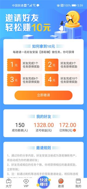 3.除了试玩任务赚钱,还可以邀请身边的朋友,下载试玩,只要把下载链接发给他,他下载了即可获得相应的报酬,徒弟每日试玩,师傅坐等收益