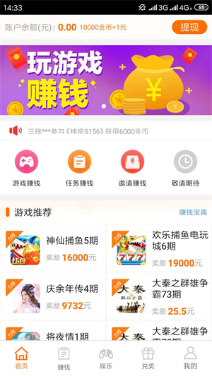 赚钱平台里的佼佼者。一直秉承让会员玩好游戏 ,多赚红包的原则,给予玩家更多的游戏奖励、推荐奖励。这不是一般平台能够做到的,只有在蹦蹦网,你才能真正体会到!尤其现在春季活动上档,奖励相当于平时的2倍之多,就是那句话:走过路过,莫要错过。