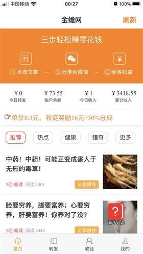 手赚平方基本上都不用投资任何资金, 特别是近期比较火爆的转发赚钱平台只需一部手机,每天利用闲暇时间,随时随地都可以动动手指, 简单转发文章被阅读就可以获得收益。这项目也就是小编今天要推荐给大家的,转发平台我只选以下的正规绿色安全的。单价各方面详情请下载app体验!