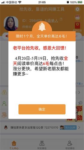 抢先收,不忘初心,感恩大回馈,瓜分20.18万元现金大奖火爆开启!4月20日到5月19日,整整1个月全天阅读单价高达0.6元,爆力涨分, 大家赶紧抓紧时间转起来!