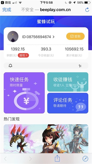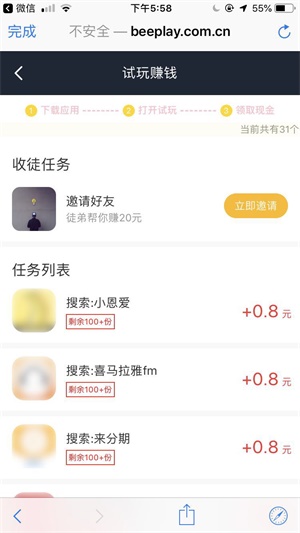 那想在手机上赚钱,首先你要选对赚钱平台,小编推荐这款实用可靠的的App,大家可以放心去下载试玩,那就是蜂蜜试玩App,它有这独特的赚钱任务,轻轻松松完成一次奖励,只要愿意花时间,新手一天赚几十块很简单,