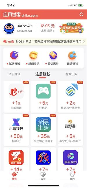 小编推荐几款款苹果手机赚钱App,如果你也想赚钱,拿起手机扫码下载试玩,每天撸点零花钱!很多小白以为手机赚钱很难操作,其实很简单的,不用技术,就简单按照平台操作下载试玩就能赚钱了,有手机就行!适合宝妈,学生党,上班族试玩,这两款平台还是挺好赚的,只要你够勤快一天赚100以上不难