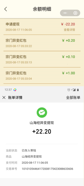 注:【元宝兑换】和【宗门异变】两个版块都有提现功能,我们着重说的是【宗门异变】,,这个版块永久0.3元提现,任意金额大小满0.3元提现秒到账,而且是可持续收益的。