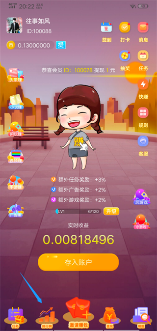 步骤二 随便玩玩游戏,刷刷视频,或者看看小说,抽个奖..... 赚他个1毛钱就可以,然后点击排行榜查看排名,是不是轻松上榜啦?前20名都有奖励........