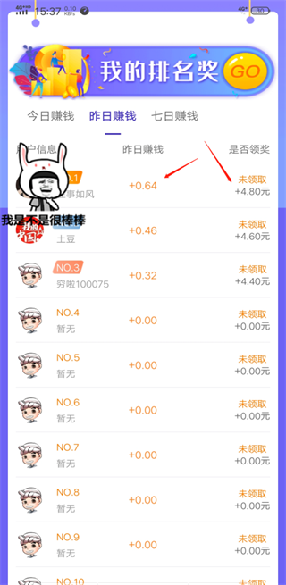 步骤三 上榜后第二天手动领取,然后继续..... 哈哈哈哈~~~~