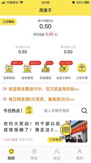 知名随手旗下新上线平台“风信子”各种奖励丰厚,阅读单价0.2-8元;默认单价1元(可以自己设置单价)10元提现,支持导文,两级永久35%提成(25% 10%)收徒额外奖励60元, 徒弟提现奖10元(徒弟前五次提现,师父每次得2元)自动到账; 徒弟转发奖50(徒弟转发满100/200/300元,奖励师傅10/20/20元)手动领取。