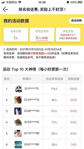 1、【收徒大赛】最高一个奖励8元,前10名有《额外》奖励