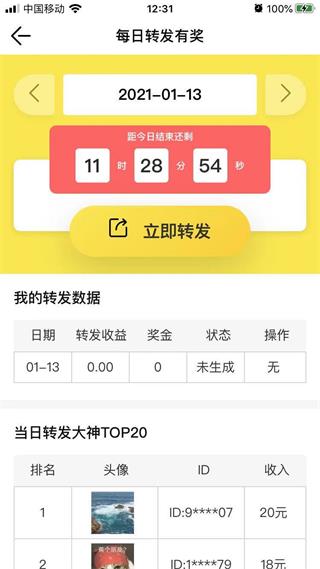 每日转发满20元奖励4元,每连续10天达标再奖20元