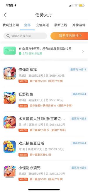 游戏赚钱:主页点击任务大厅,有很多游戏赚钱任务任你挑选,找到自己喜欢的游戏进行下载,按照任务要求试玩,最后获得奖励,自由职业者可以利用零碎时间为自己多赚钱一份额外收益