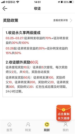 徒弟转发奖50(徒弟转发满100/200/300元,奖励师傅10/20/20元)手动领取;