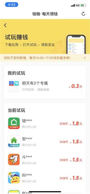 2,后续完成10个试玩任务,每个1元